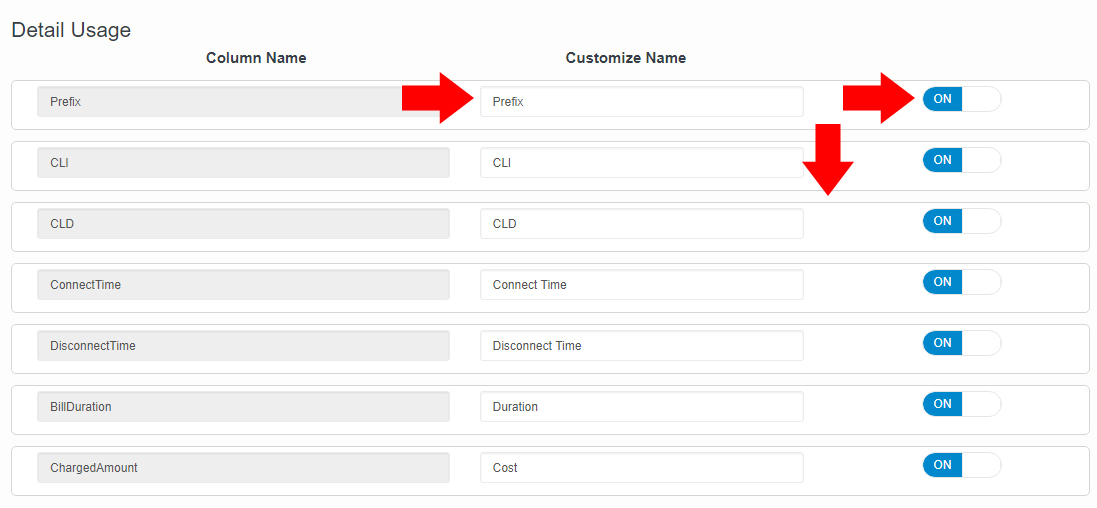 1) Now you will be able to customize usage columns which appear on the invoice. In order to do that go to Billing -> Invoice Template. Click on Usage Column button next to invoice template.