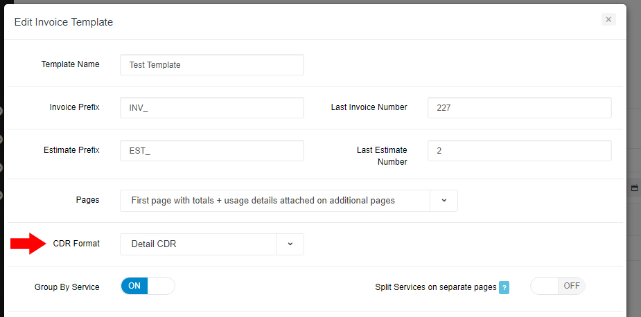 4) Moved CDR Format under Invoice Template from Billing Class.